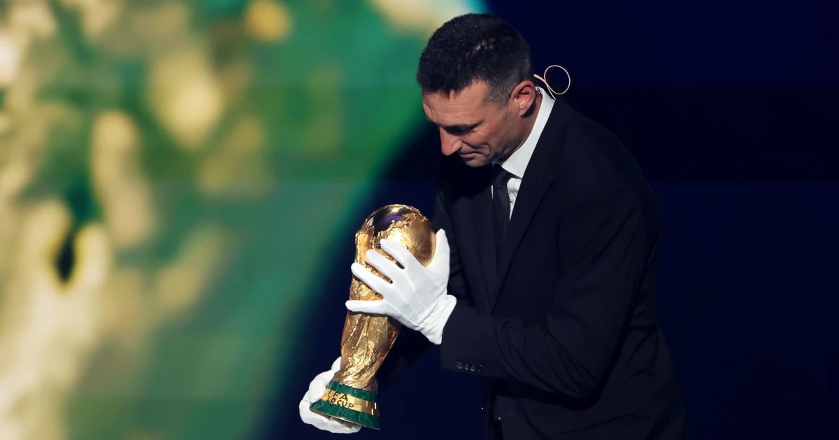 Durante o sorteio dos grupos da Copa do Mundo de 2026, em Washington, nos Estados Unidos, no último dia 5 de dezembro, o técnico da Seleção Argentina, Lionel Scaloni, foi convidado a levar ao palco o troféu do Mundial. Ele foi orientado a usar luvas para encostar na taça, apesar de ser o treinador campeão do mundo de 2022.